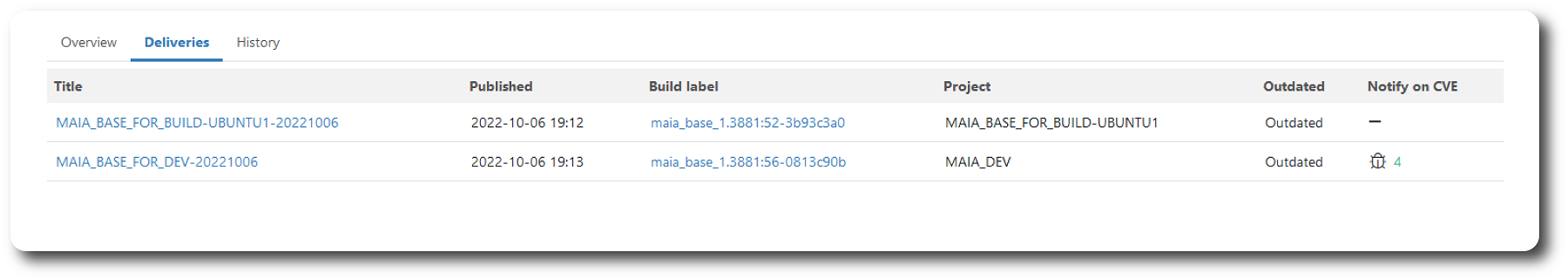 The deliveries tab contains a list of deliveries stating where this Issue was included the first time (per product/environment).