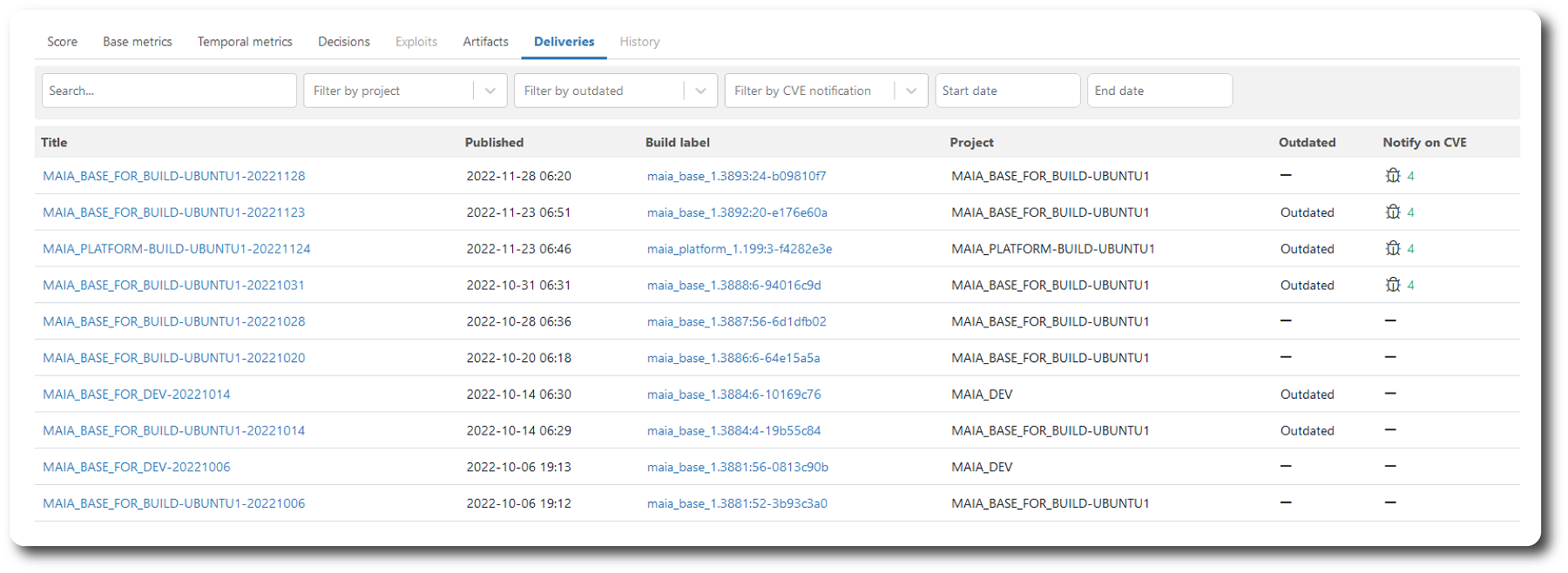 The CVE deliveries page contains a list of all delivery reports affected by this CVE.