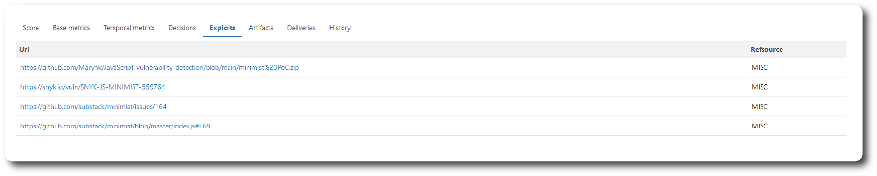 The Exploits tab contains a list of detected exploits, each with a link to more detailed information.