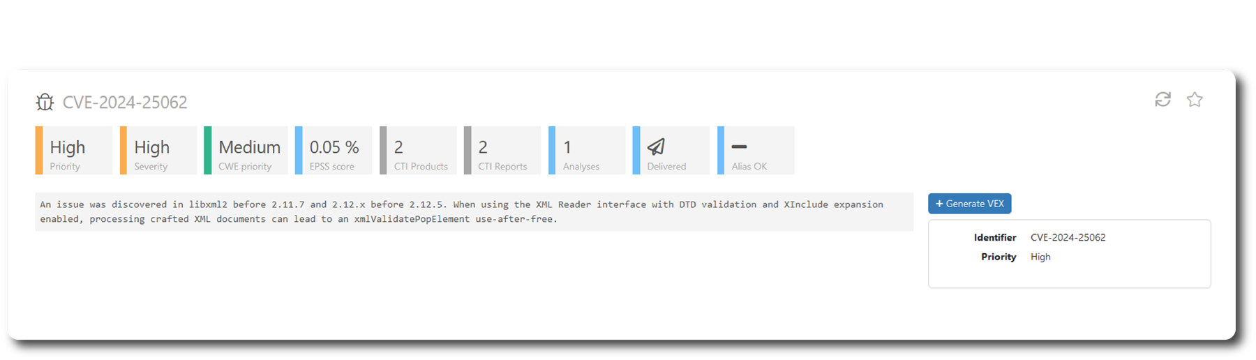 The Vulnerabilities show page contains information and references related to one specific vulnerability identity.