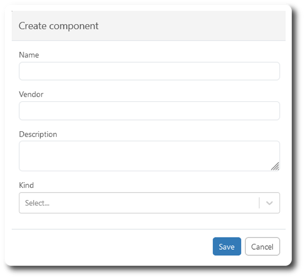 Edit the component name. Edit the vendor. Add a description. Select kind of component: Single/Collection/External. Save